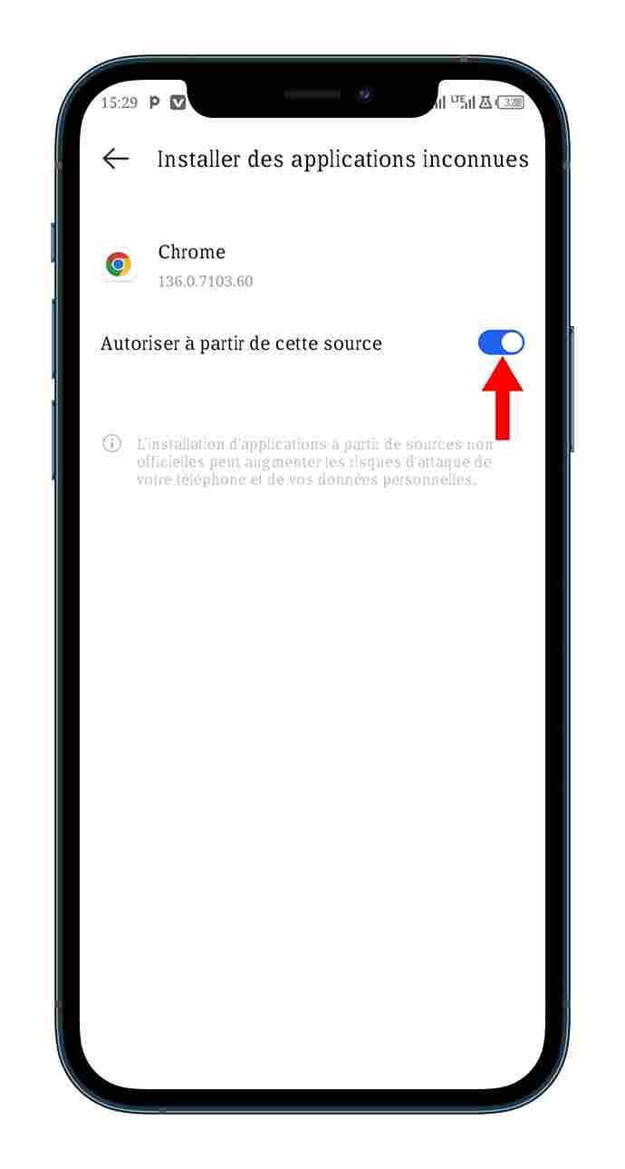 Allez dans les paramètres de sécurité de votre téléphone. Autorisez l’installation d’applications ne provenant pas du Play Store.