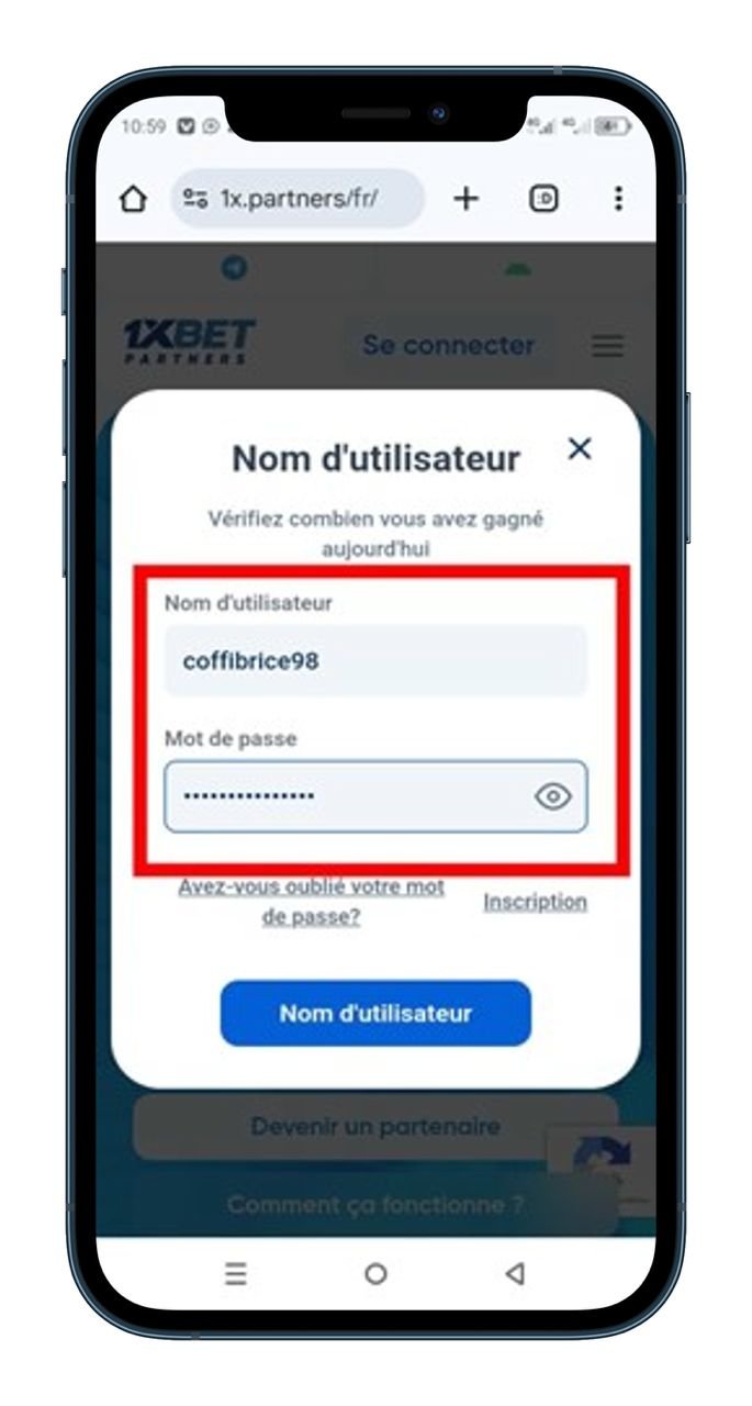 Lancez l’application et utilisez vos identifiants habituels pour votre 1xBet Partners login.