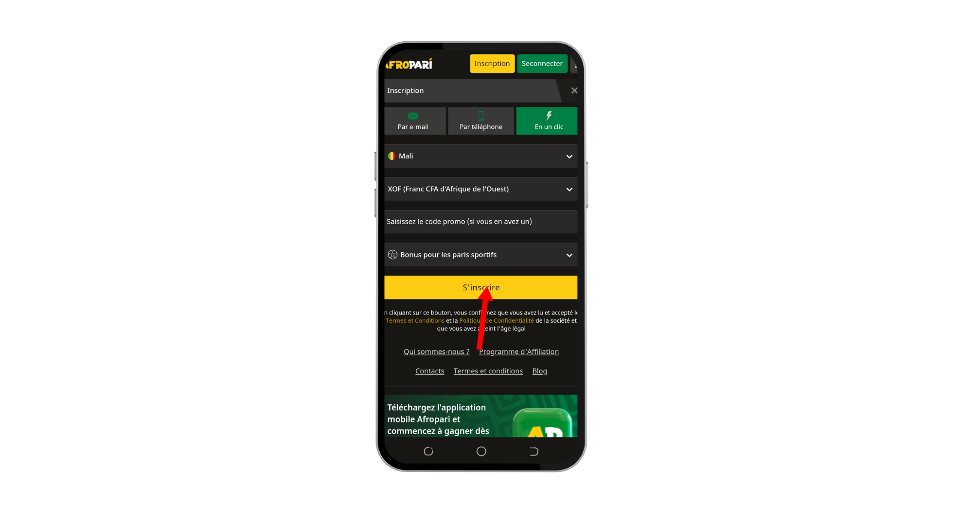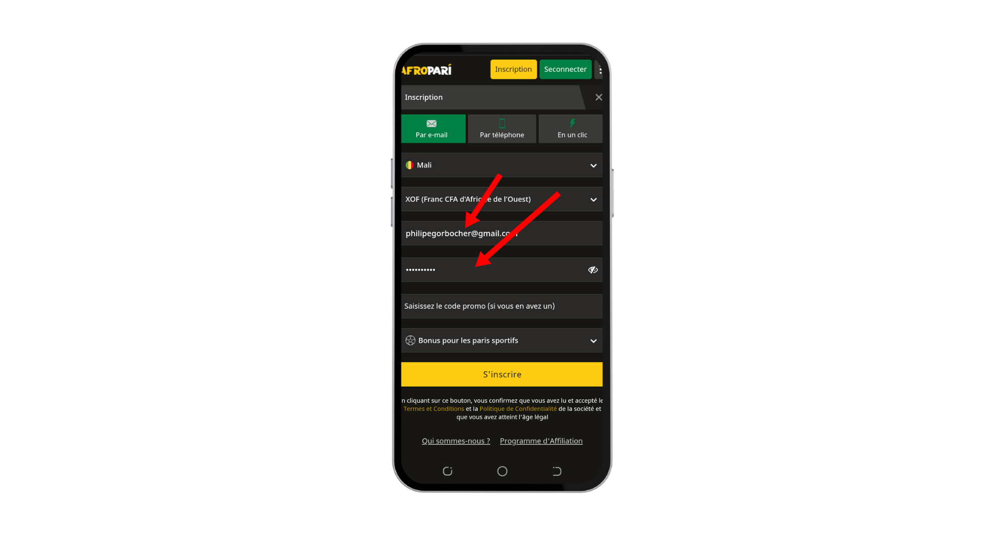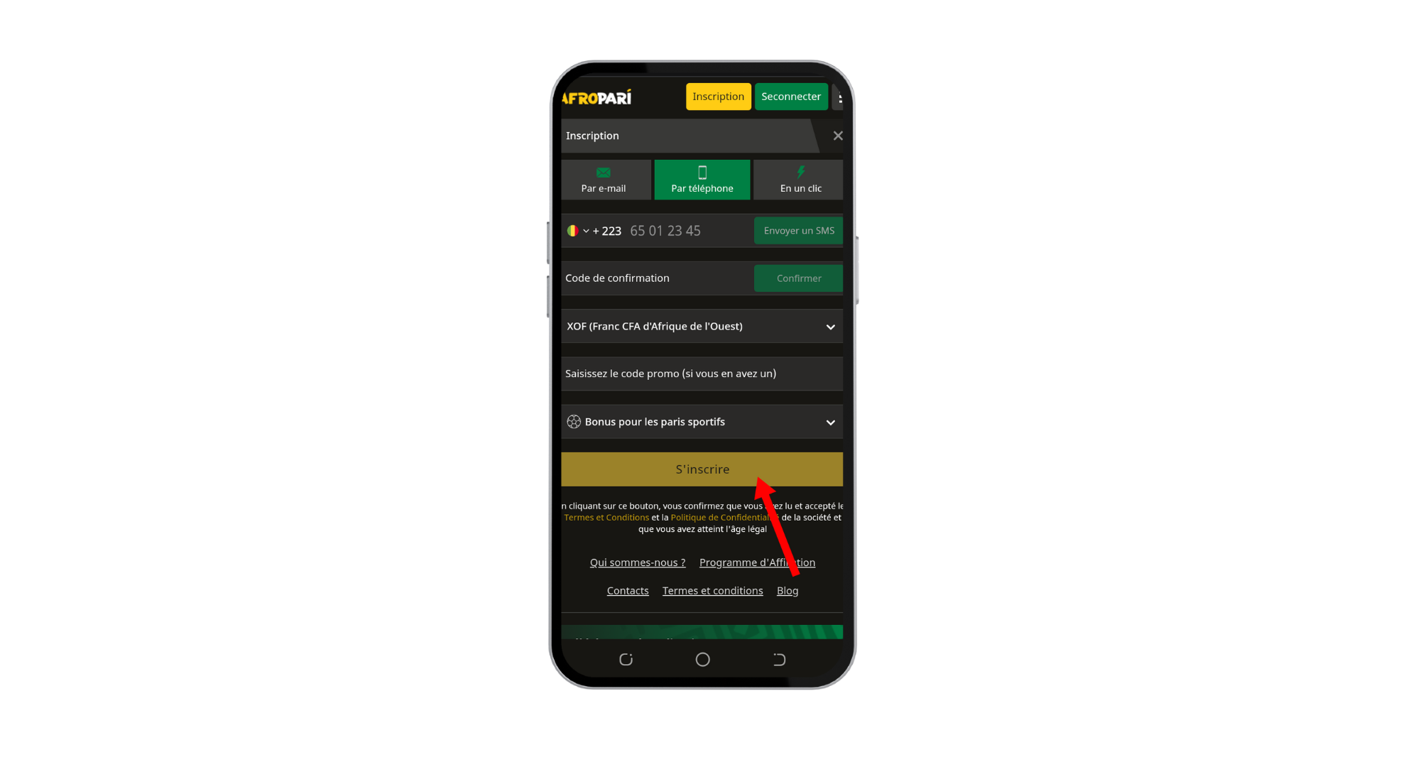 Afropari inscription téléphone