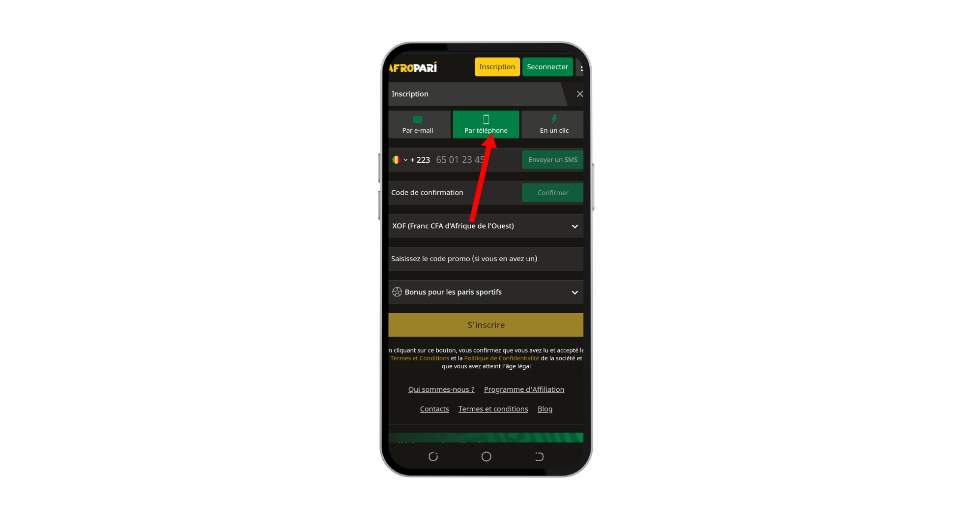 S’inscrire par numéro de téléphone