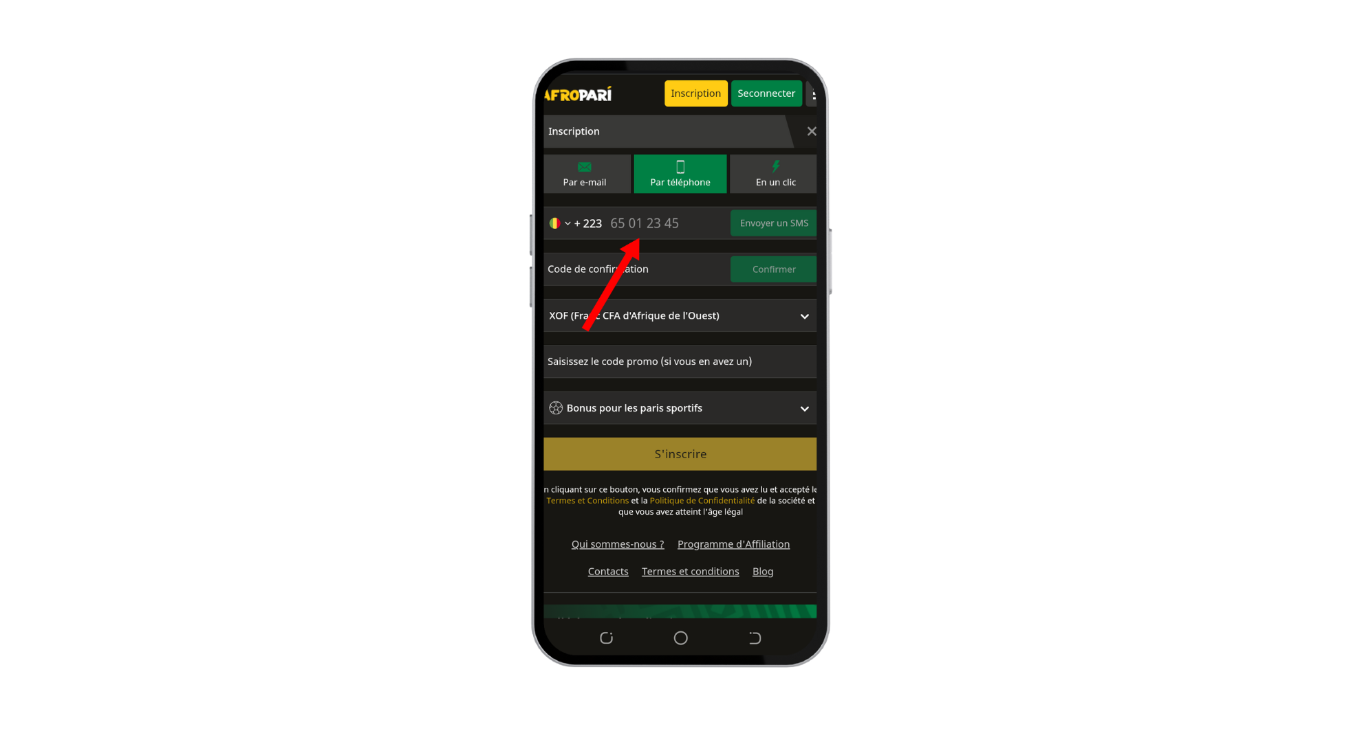 Cette méthode est idéale si vous voulez créer un compte Afro Paris en quelques secondes avec simplement votre numéro. Aucun email requis, tout se fait par SMS.
