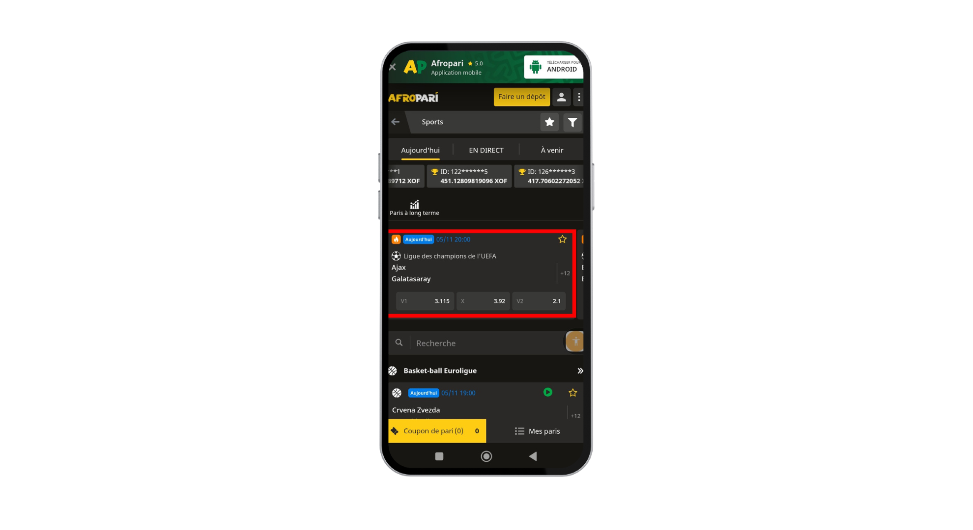 Oui : AfroPari propose une version mobile et une application Android (APK). L’application iOS est mentionnée mais parfois non encore disponible sur l’App Store selon pays.