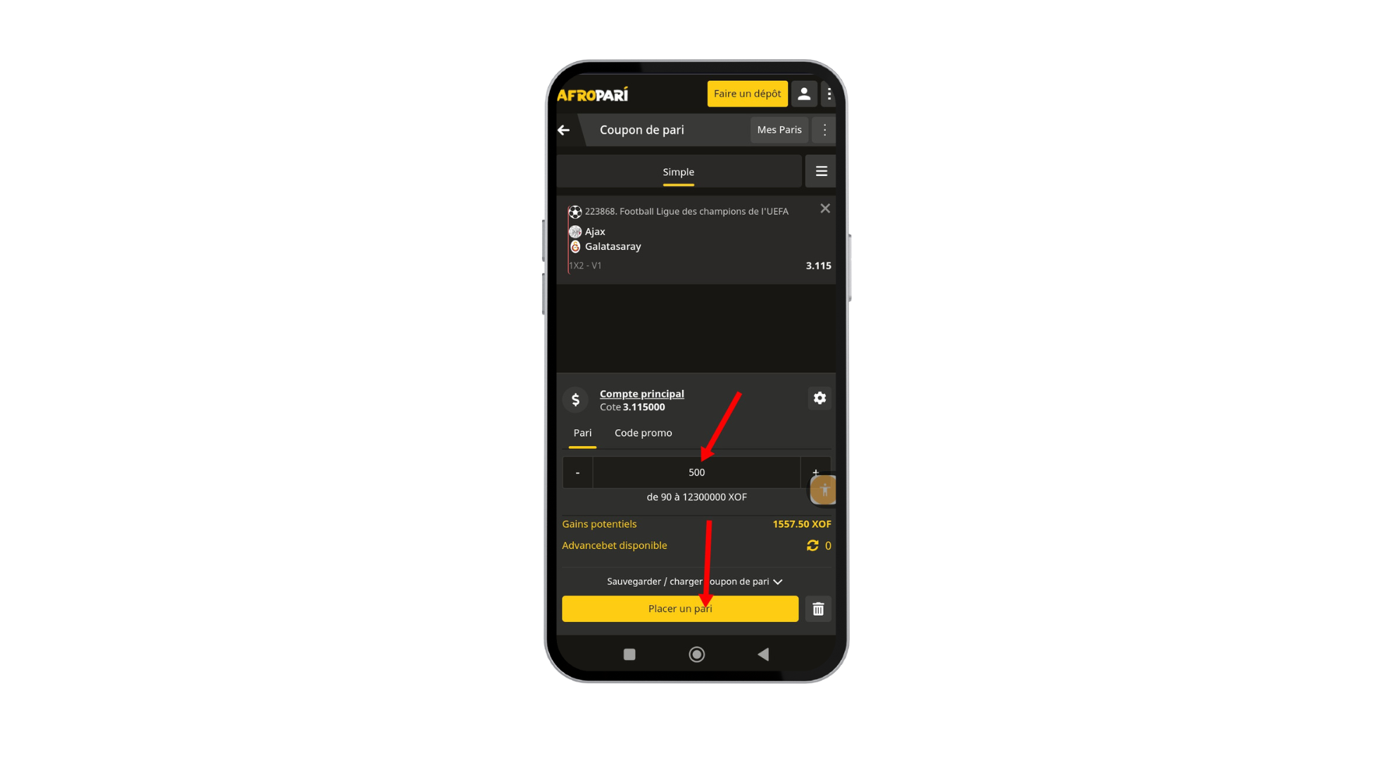 3. Effectuez un dépôt minimum de 3 000 XOF