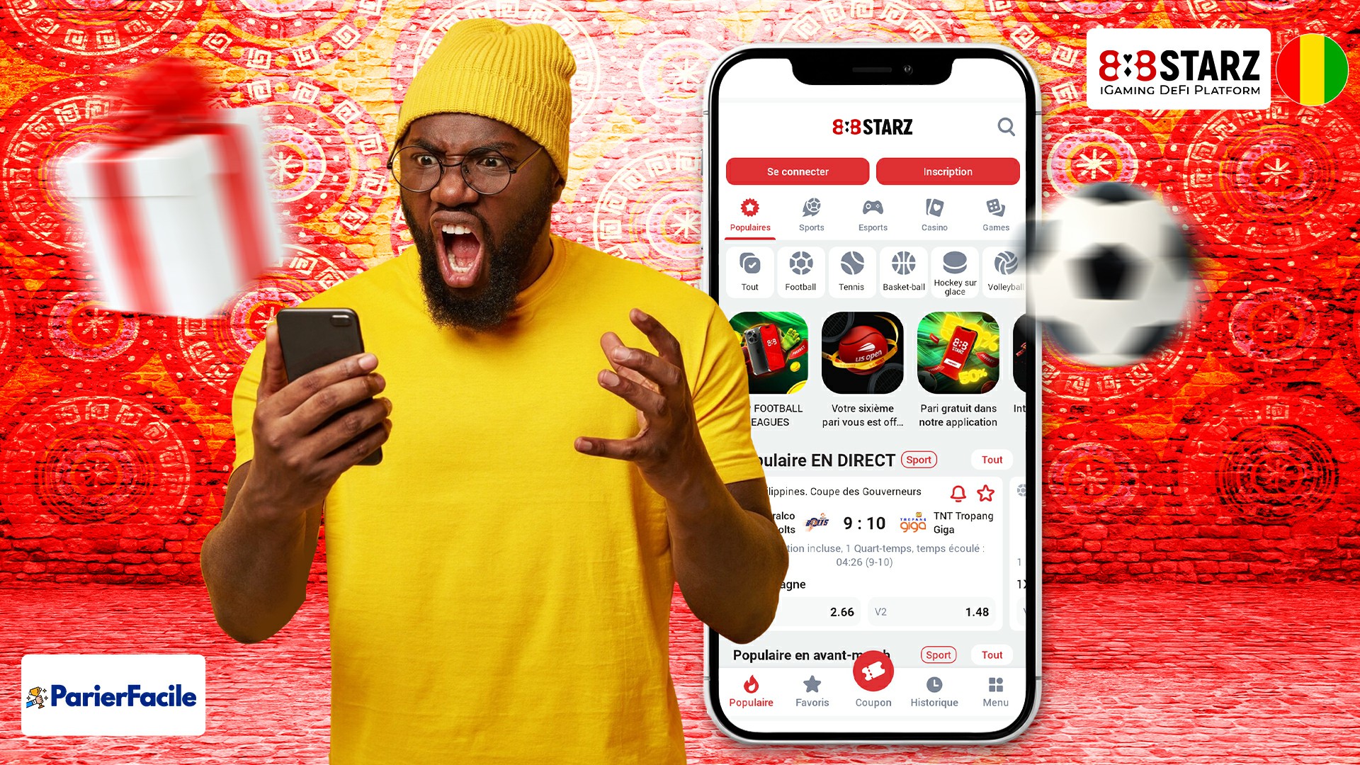 « Pour obtenir le bonus 888Starz Guinée, commencez par l’inscription en utilisant le code promo 1TRE. Remplissez le formulaire, acceptez les conditions, et validez votre compte. Finalement, rechargez votre compte. Le bonus qui est de 100 % jusqu’à 65 500 XAF, après votre premier dépôt, sera alors crédité automatiquement. »