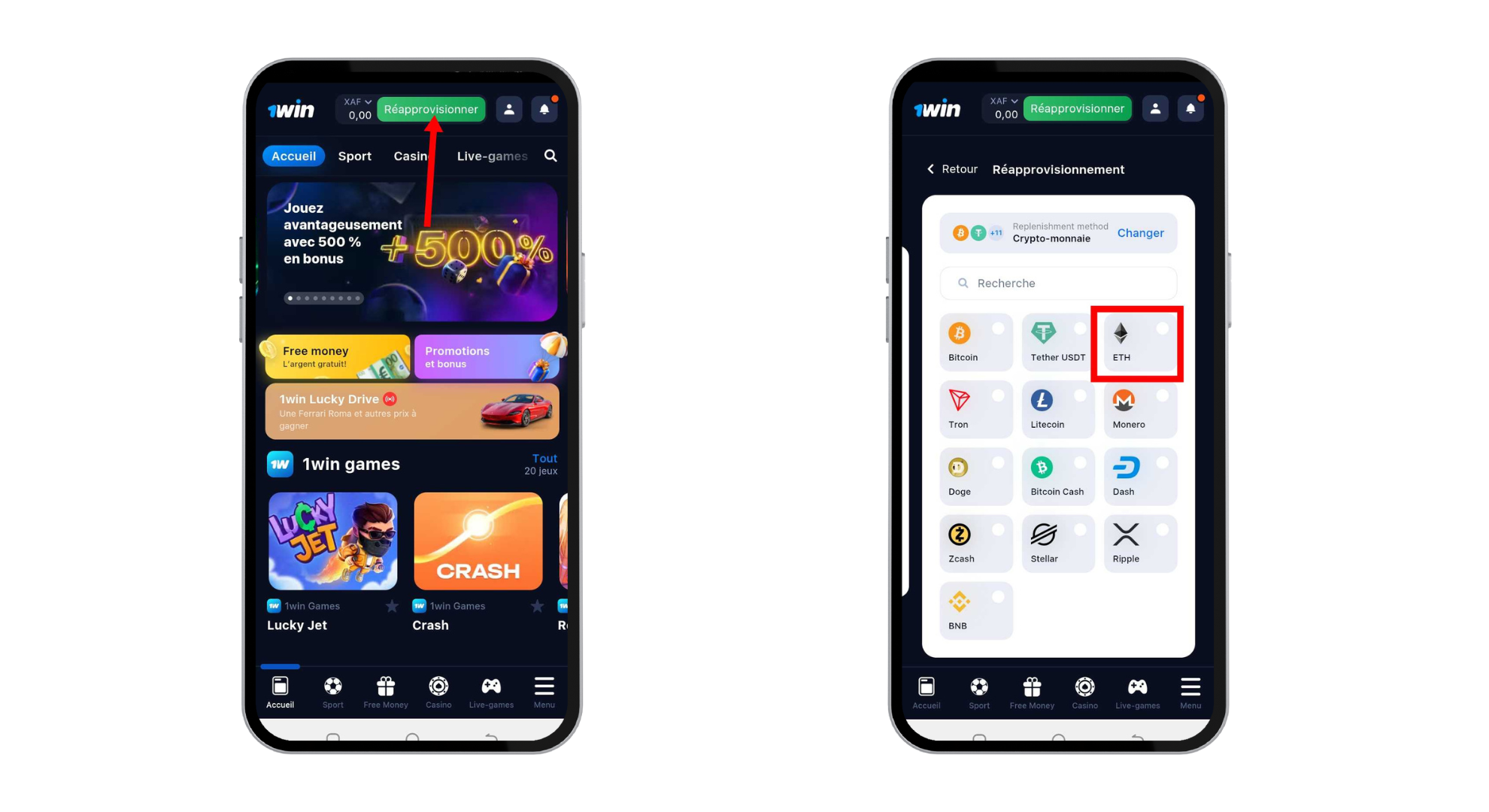 - Dépôt initial : Connectez-vous à votre compte 1win, cliquez sur « Recharger » et choisissez une méthode de paiement (virement bancaire, carte de crédit, portefeuille électronique ou cryptomonnaie). Entrez le montant et suivez les instructions.