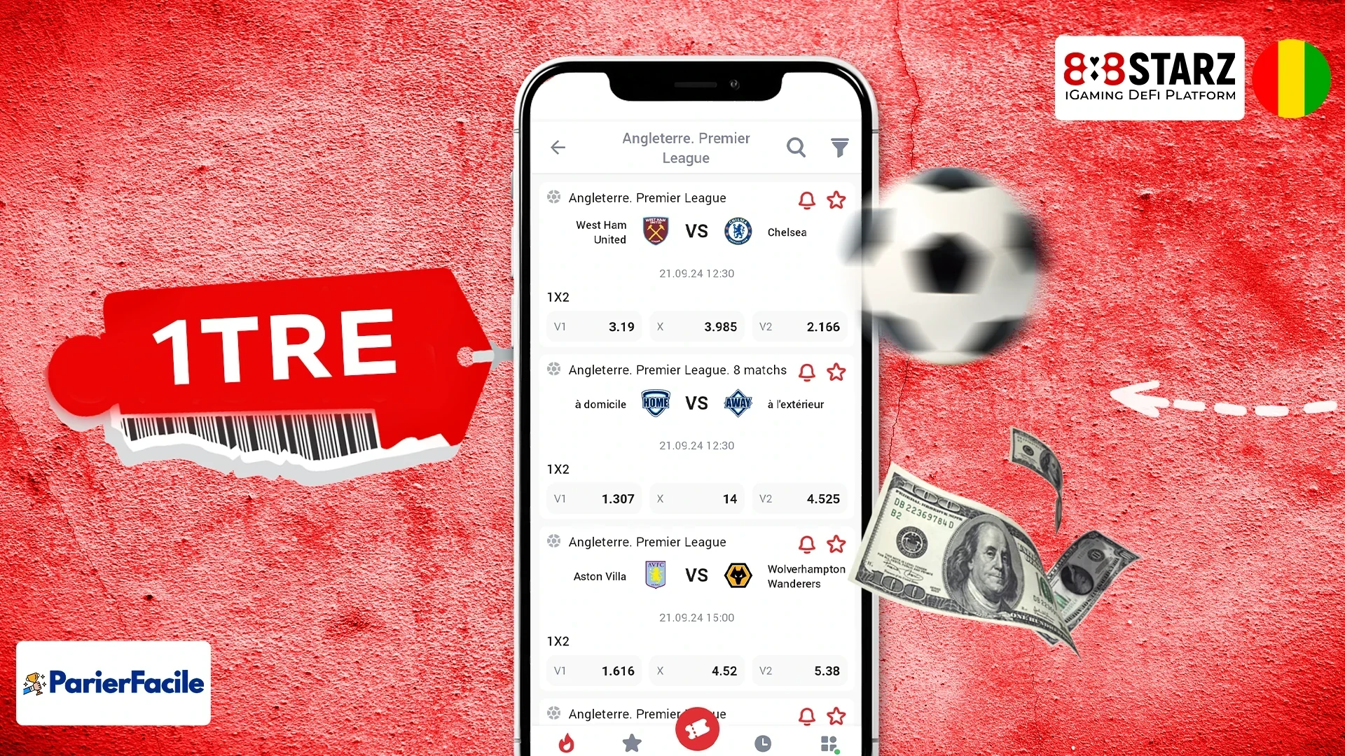 18+ Nouveaux Utilisateurs uniquement. Bonus de Bienvenue - Rechargez votre compte et obtenez 100 % de bonus. Pour en profiter suivez le lien "Parier Maintenant" ou entrez Le code Promo 1TRE lors de votre inscription.