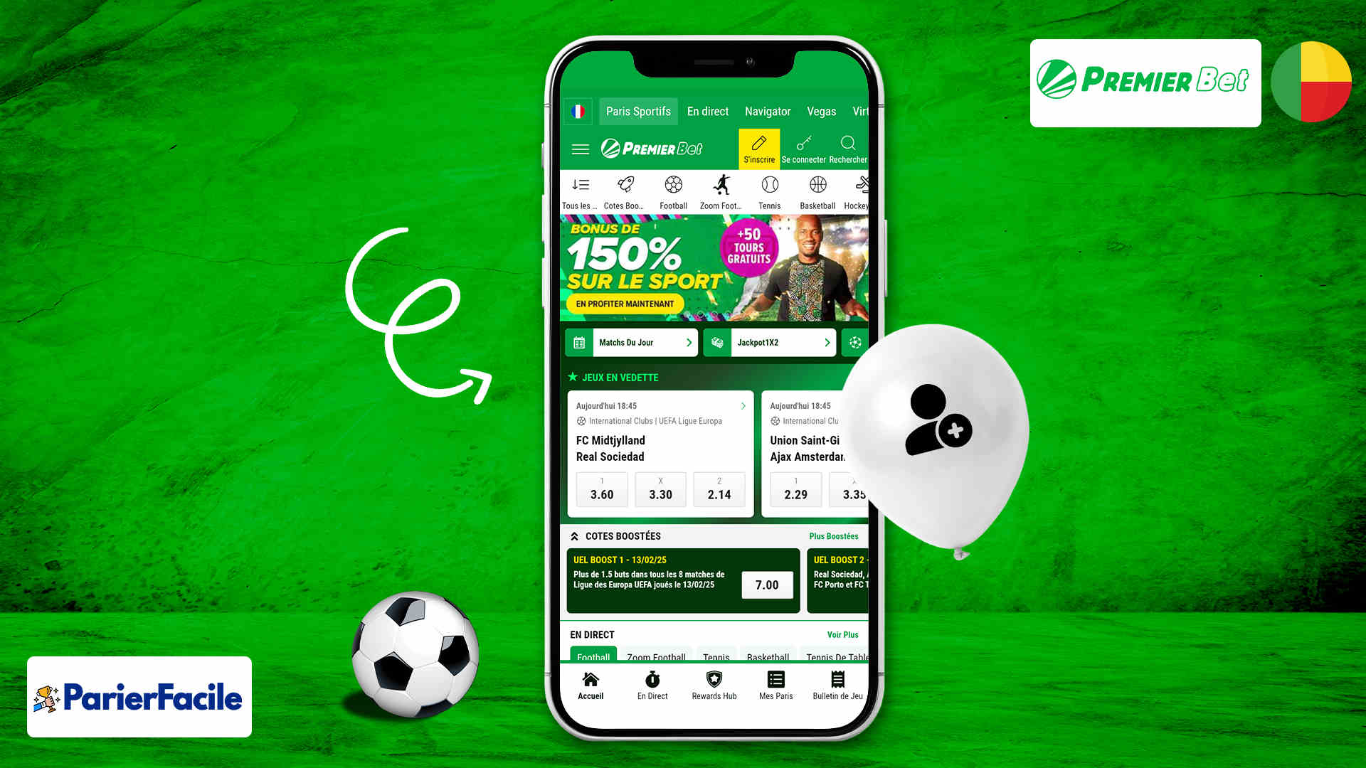 Premier Bet Bénin inscription ➡️ Voici les étapes à suivre pour créer votre compte Premier Bet au Bénin en 2025. En tant que parieur, choisir le bookmaker Premier Bet est un choix judicieux. Et la cerise sur le gâteau, un bonus de 22 000 FCFA convertissables en paris gratuit vous y attend après votre premier dépôt.