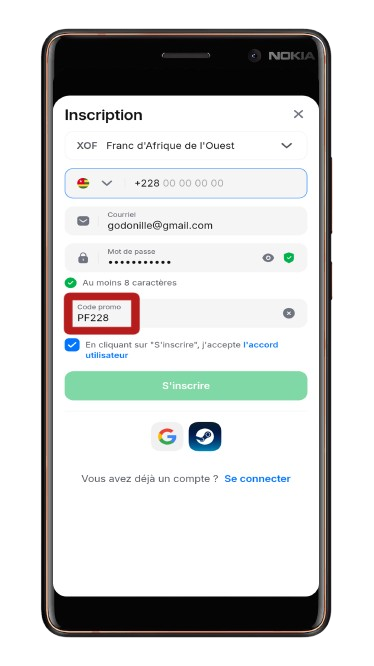 En cas d’échec d’identification, évitez absolument de créer un second compte (le multicompte est passible de bannissement). Utilisez l’option « Mot de passe oublié ? » pour recevoir un code de réinitialisation par SMS sur votre numéro togolais associé à votre compte TMoney ou Moov Money.