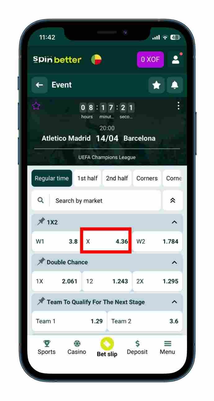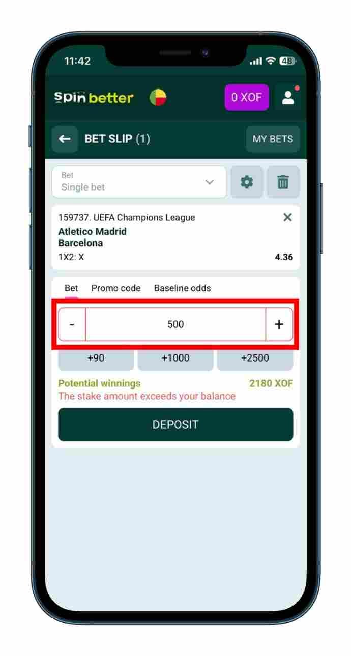 Si vous privilégiez les événements sportifs, nous vous offrons un bonus Spinbetter de 100 % pouvant atteindre jusqu’à 284 000 XOF sur vos cinq premiers dépôts. Pour activer ce bonus SpinBetter, déposez un minimum de 656 XOF pour le sport ou 6 560 XOF pour le casino afin de recevoir instantanément votre récompense de +100 %.