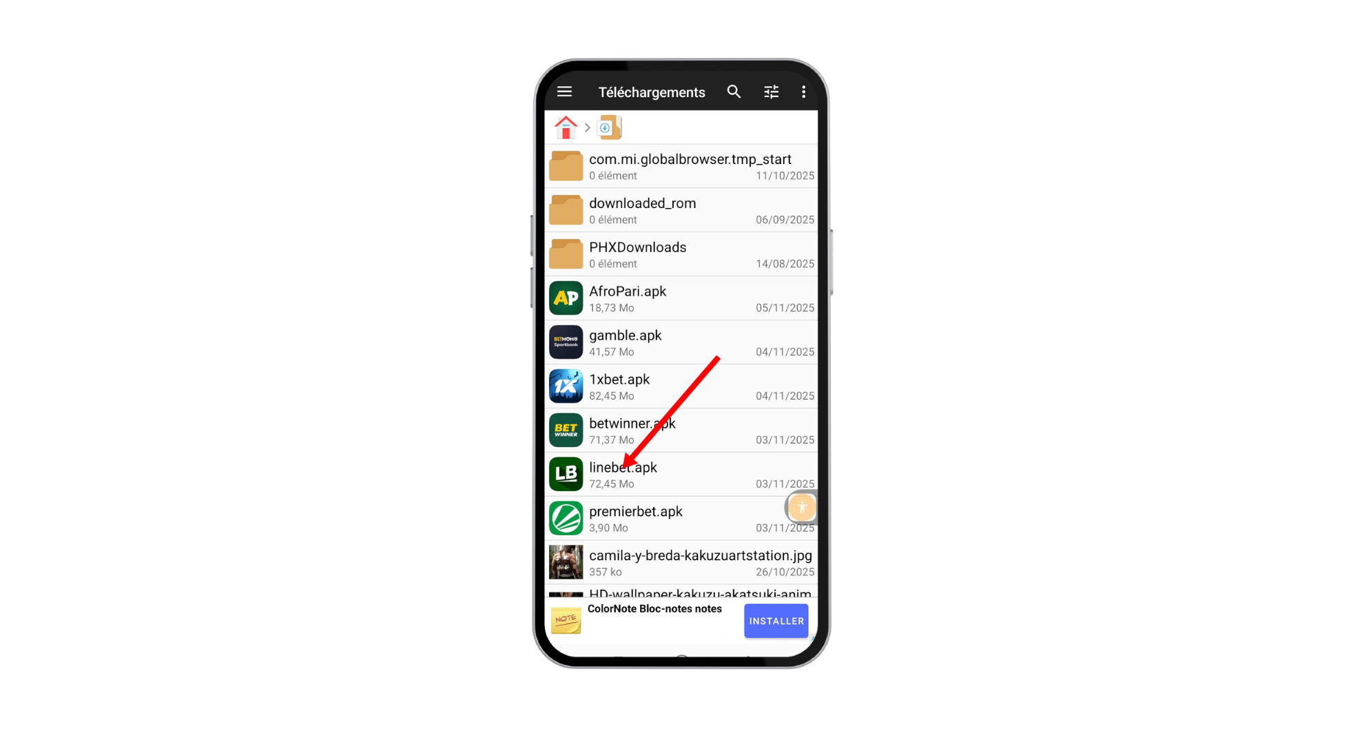 Une fois le téléchargement terminé, ouvrez votre dossier “Téléchargements” pour repérer le fichier Linebet.apk avant de procéder à l’installation.