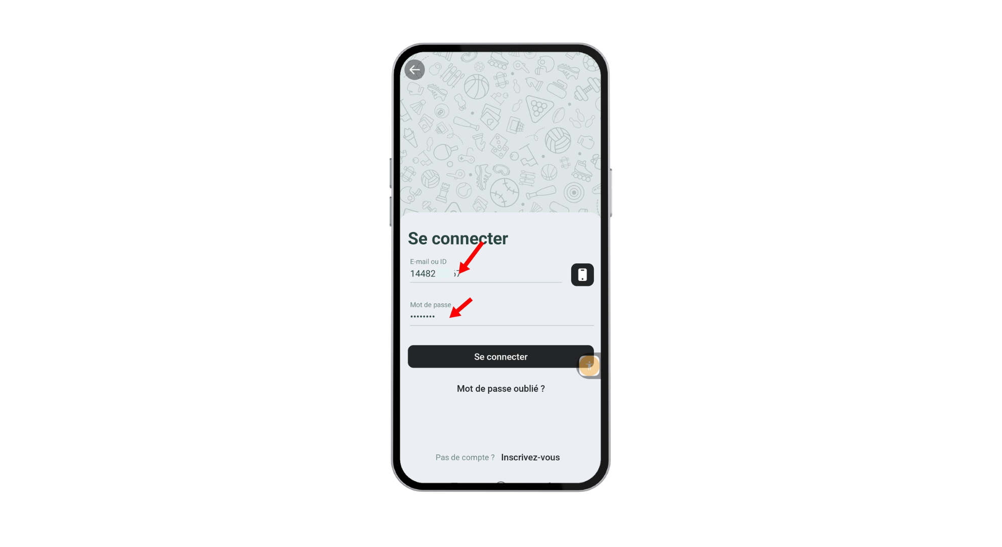 Entrez votre numéro de téléphone ou adresse e-mail, ainsi que votre mot de passe, utilisés lors de la création du compte.