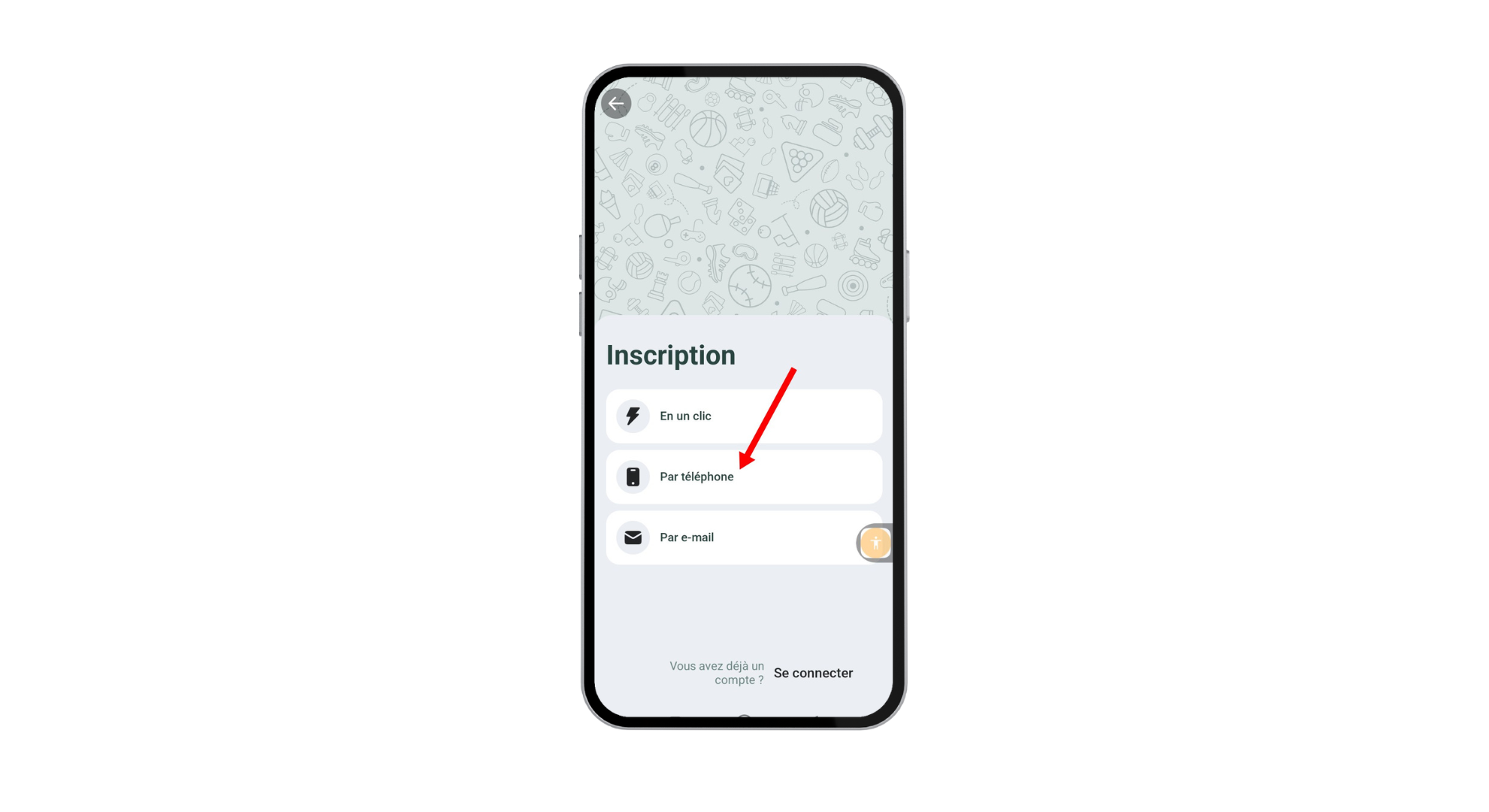 Sélectionnez la méthode qui vous convient : par téléphone, par e-mail, ou via réseaux sociaux. Ici, choisissez l’inscription par téléphone.