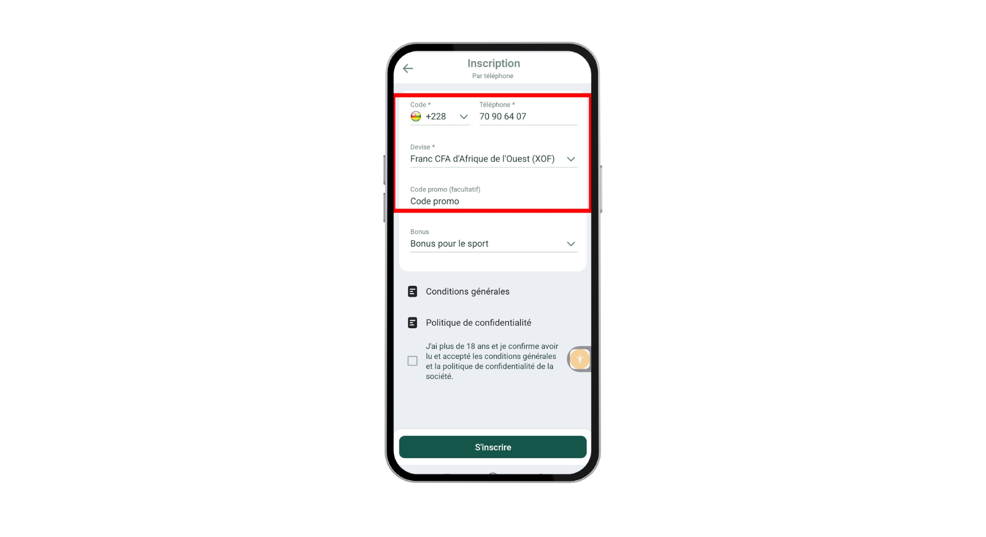 - Déposez au moins 6 571 XOF pour activer le premier bonus.