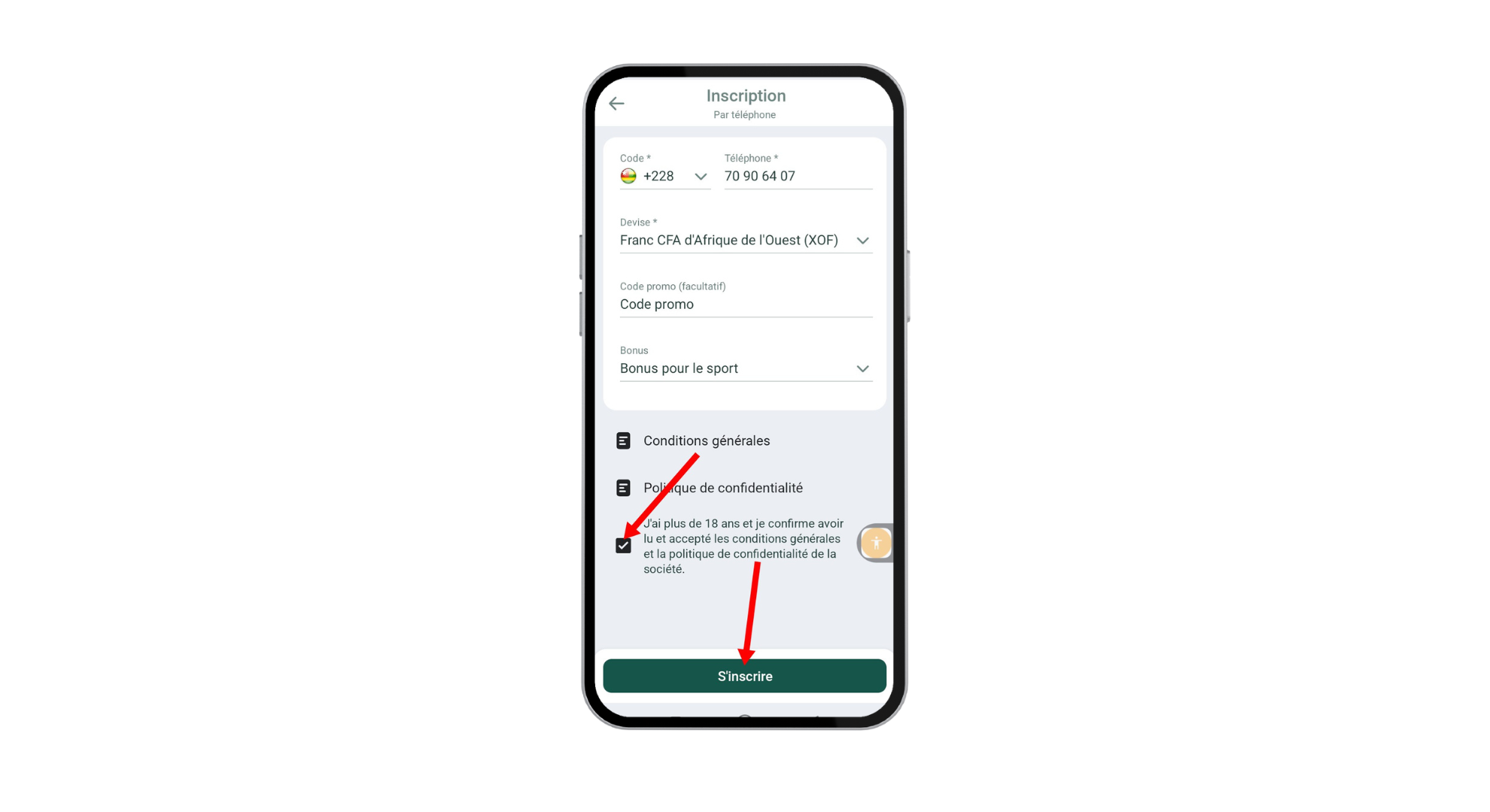 Étape 5 : Accepter les conditions et cliquer sur “S’inscrire”