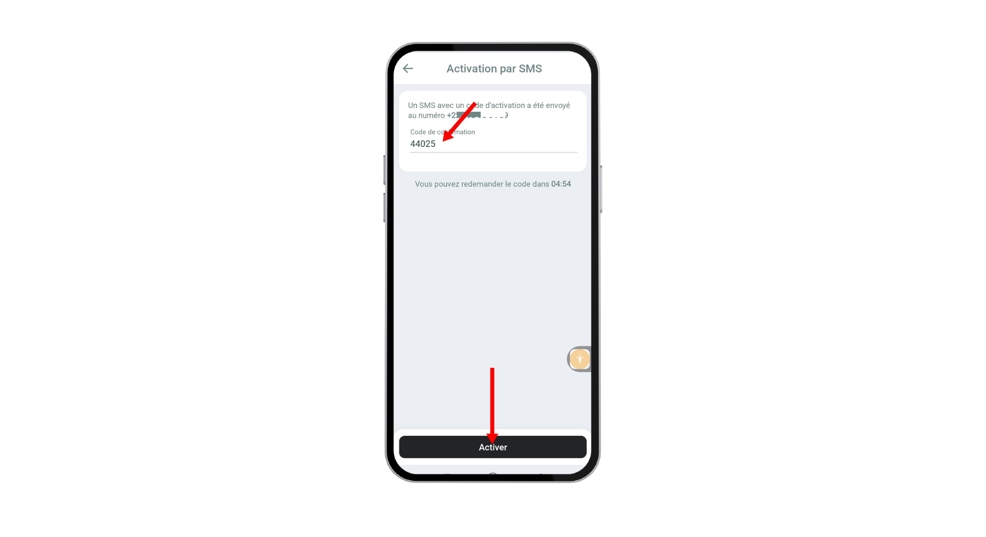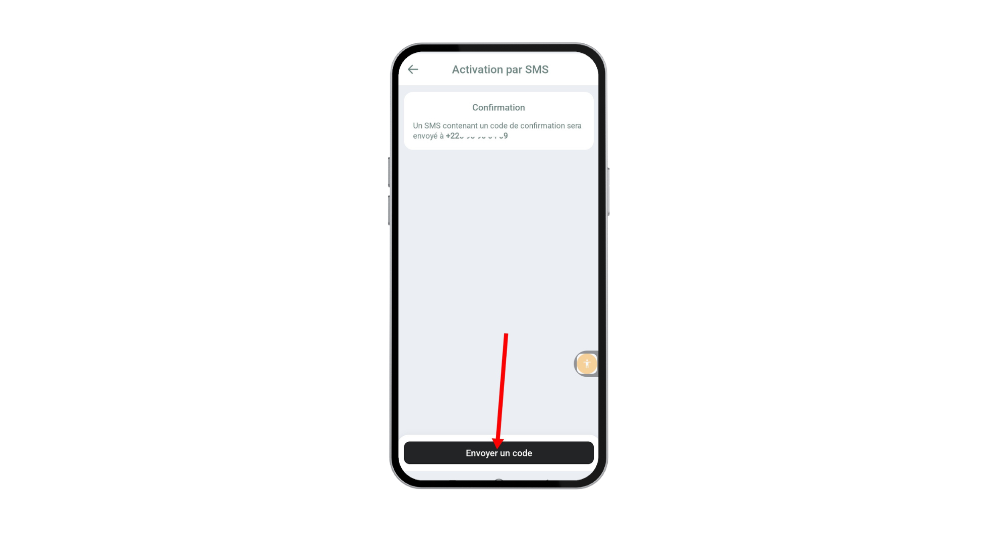 Appuyez sur le bouton “Envoyer le code” en bas de l’écran afin de recevoir par SMS votre code d’activation sécurisé.