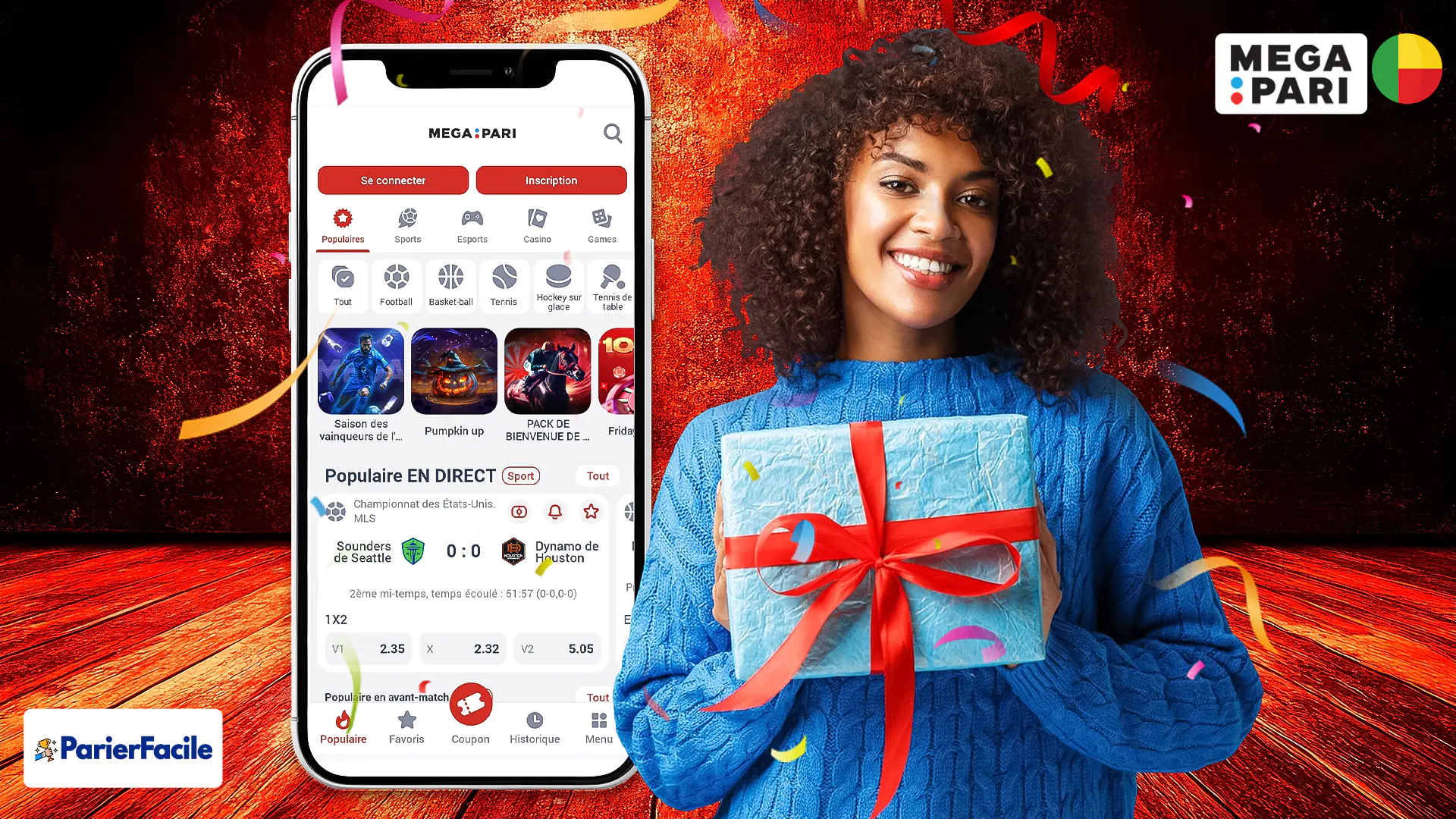 Après avoir créé votre compte sur Megapari Bénin, vous pouvez immédiatement profiter des offres de bienvenue. Vous trouverez ci-dessous les différents bonus auxquels vous aurez droit en tant que nouveaux joueurs, que ce soit pour les paris sportifs, les jeux de casino ou les paris gratuits.