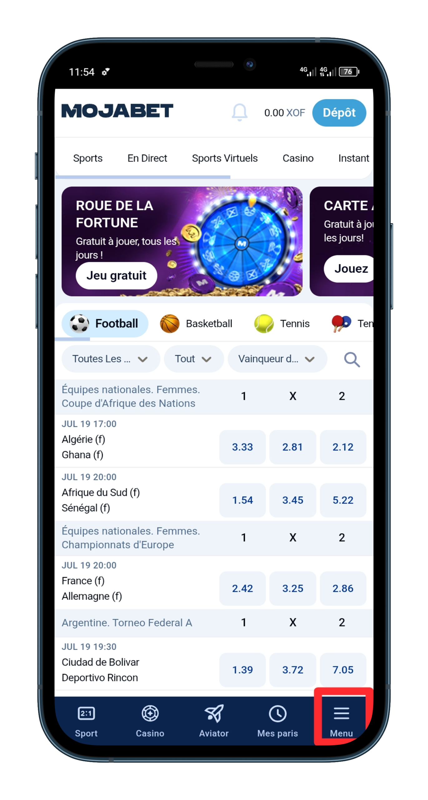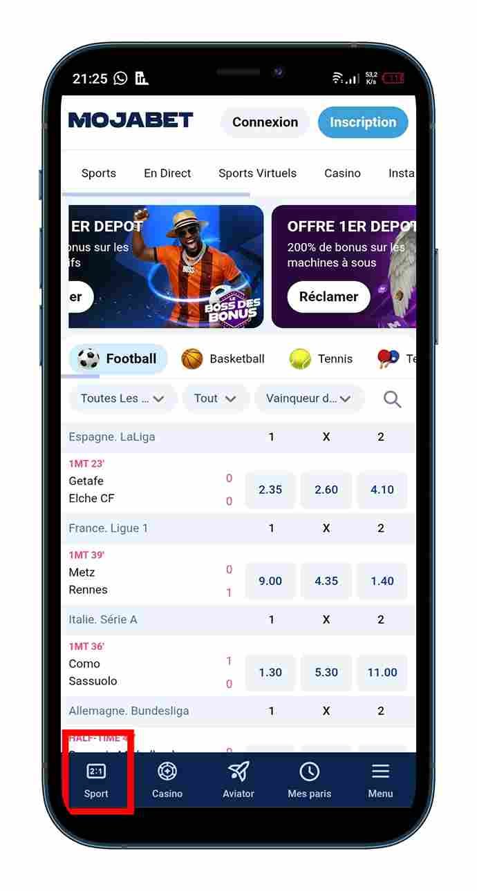 Accédez au site officiel Mojabet ou ouvrez l’application mobile Mojabet APK afin d’utiliser une plateforme sécurisée, optimisée pour les paris sportifs en RDC.