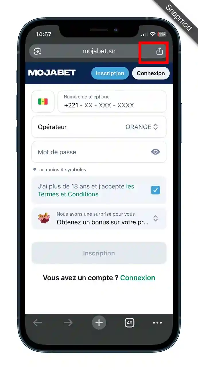 Cliquez sur le bouton Inscription pour créer définitivement votre Mojabet compte et accéder immédiatement à votre espace joueur.
