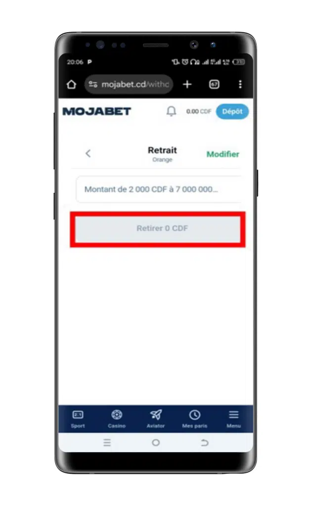 Étape 2 : Soumettre la demande de retrait Mojabet