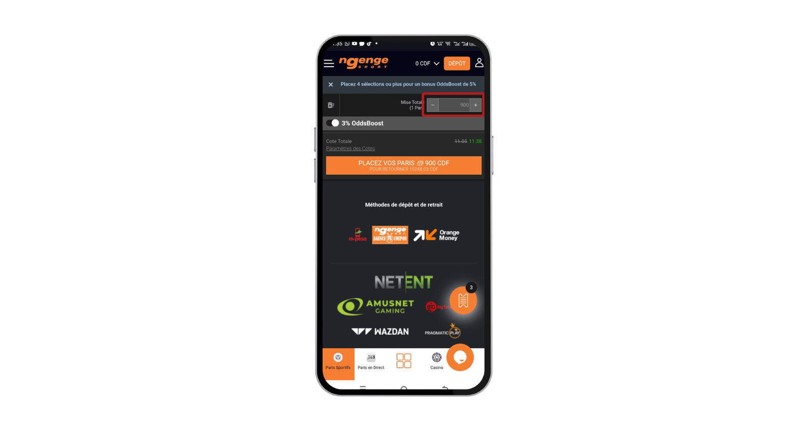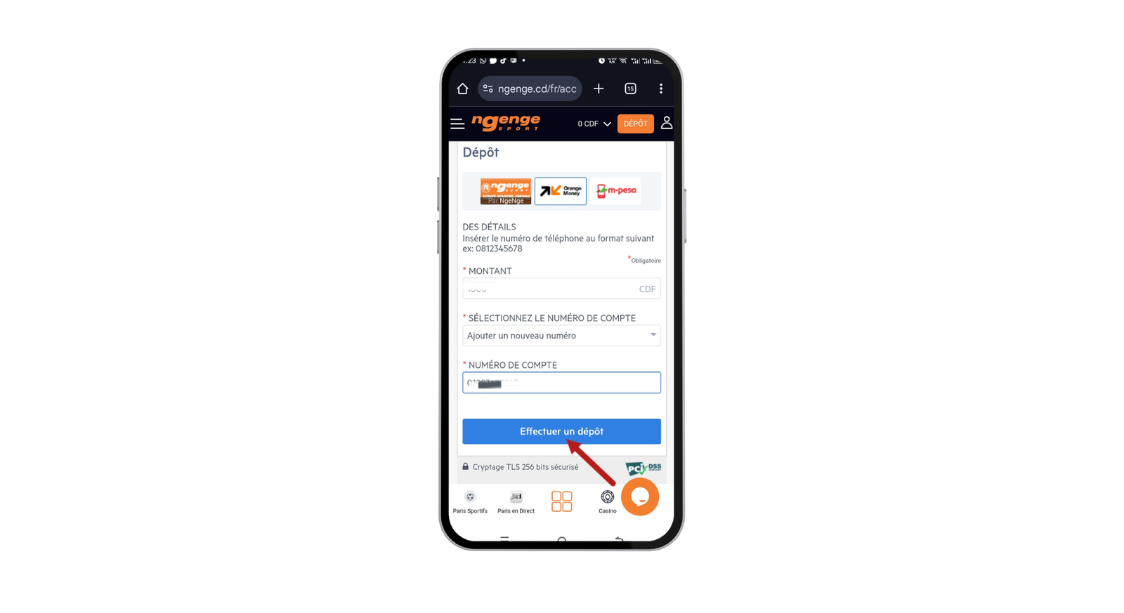 Comment effectuer un dépôt pour parier sur Ngenge Sport ?