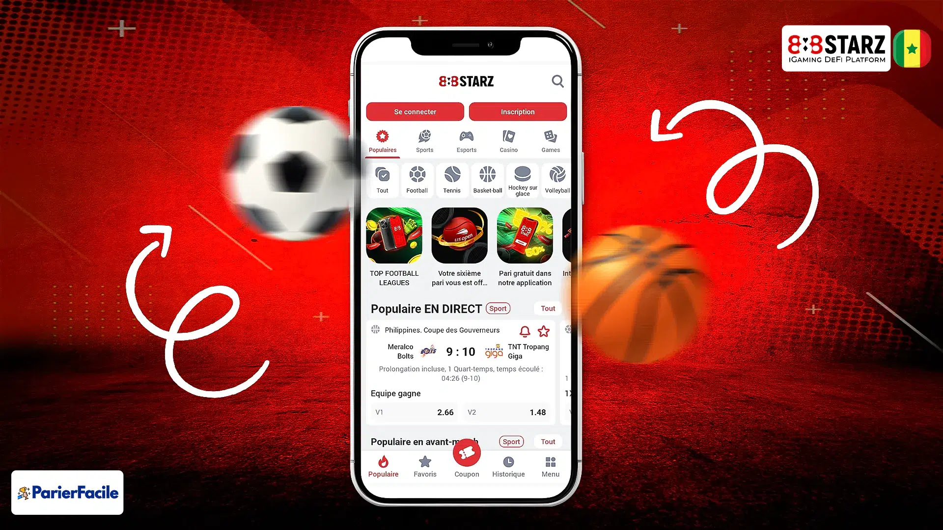 « Pour parier sur 888Starz Sénégal, deux méthodes sont possibles. La première consiste à sélectionner un sport, un événement, et cliquer sur la cote pour l’ajouter au coupon de pari, puis à renseigner votre mise et valider. La seconde méthode est de scanner le code d’un coupon partagé par un autre parieur, en veillant à vérifier le contenu avant de valider votre pari. »