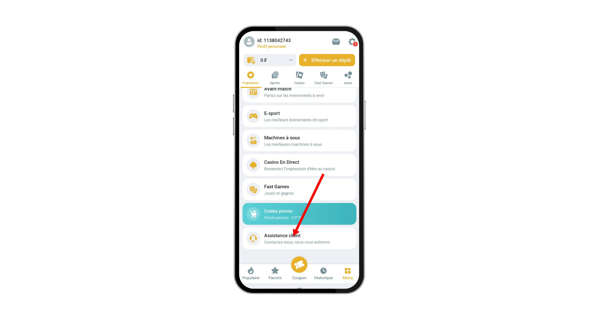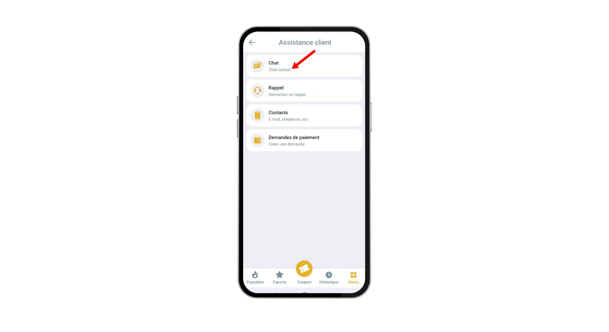 Étape 3 : Cliquer sur “Assistance client”