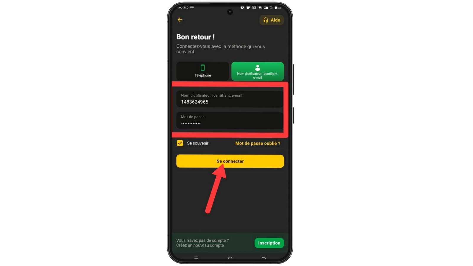 Saisissez votre numéro de téléphone ou adresse e-mail et votre mot de passe.