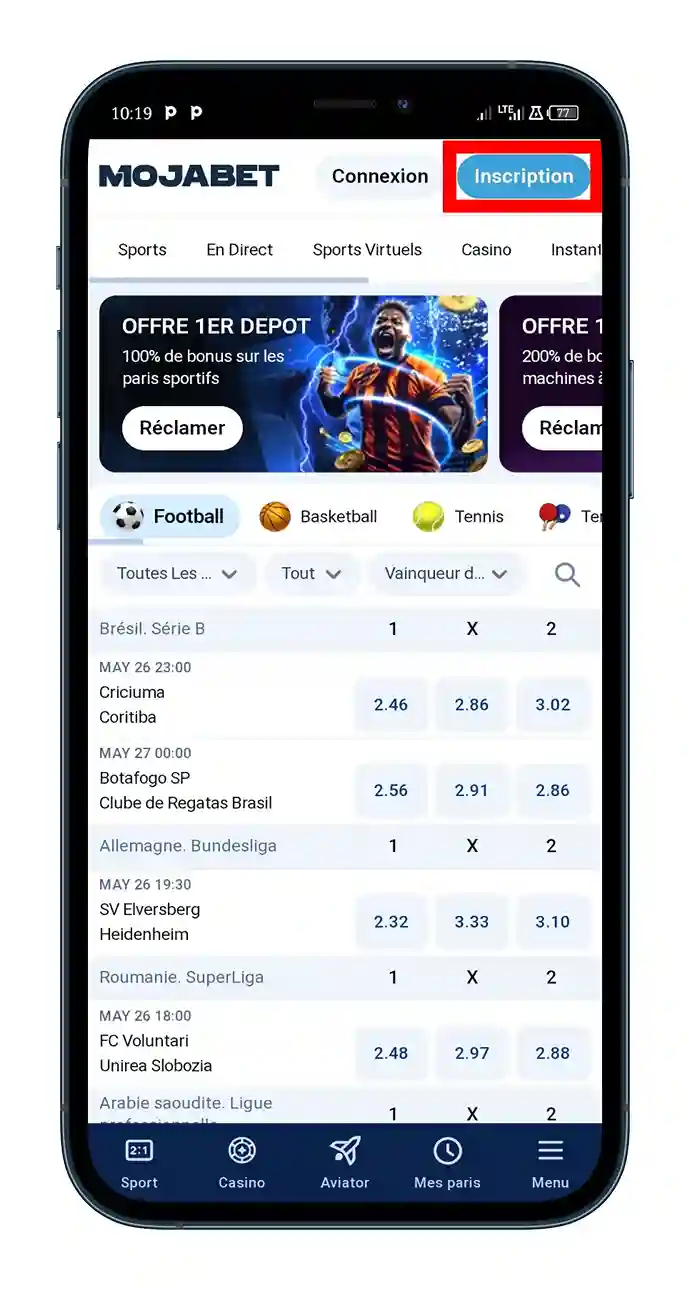Comment s’inscrire sur Mojabet App Android et iOS ?